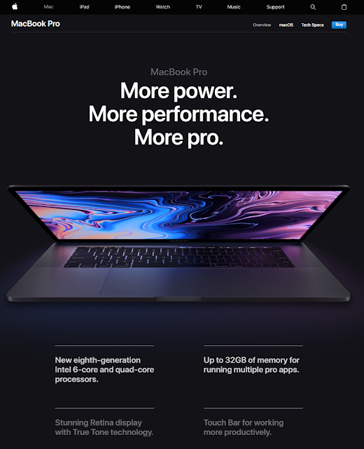 | (圖片來源:Apple > Mac > Macbook Pro, retrieved on 14 Jul 2018) |