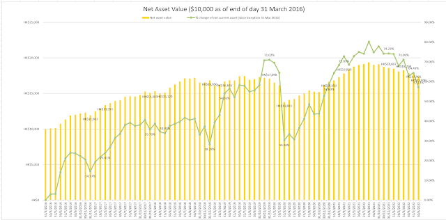 魔術師屋企估價則繼續微跌,加上投資組合下挫,本月資產淨值(身家)持續下跌,每單位收報$17,400,較上月跌2.79%;淨流動資產亦較上月下跌4.44%(較2016年3月31日基數升57.13%)。慶幸的是資產淨值(身家)及淨流動資產下跌幅度仍較2020年尾帝融斷時為細,可以再研究如何分散投資,操待黎明: