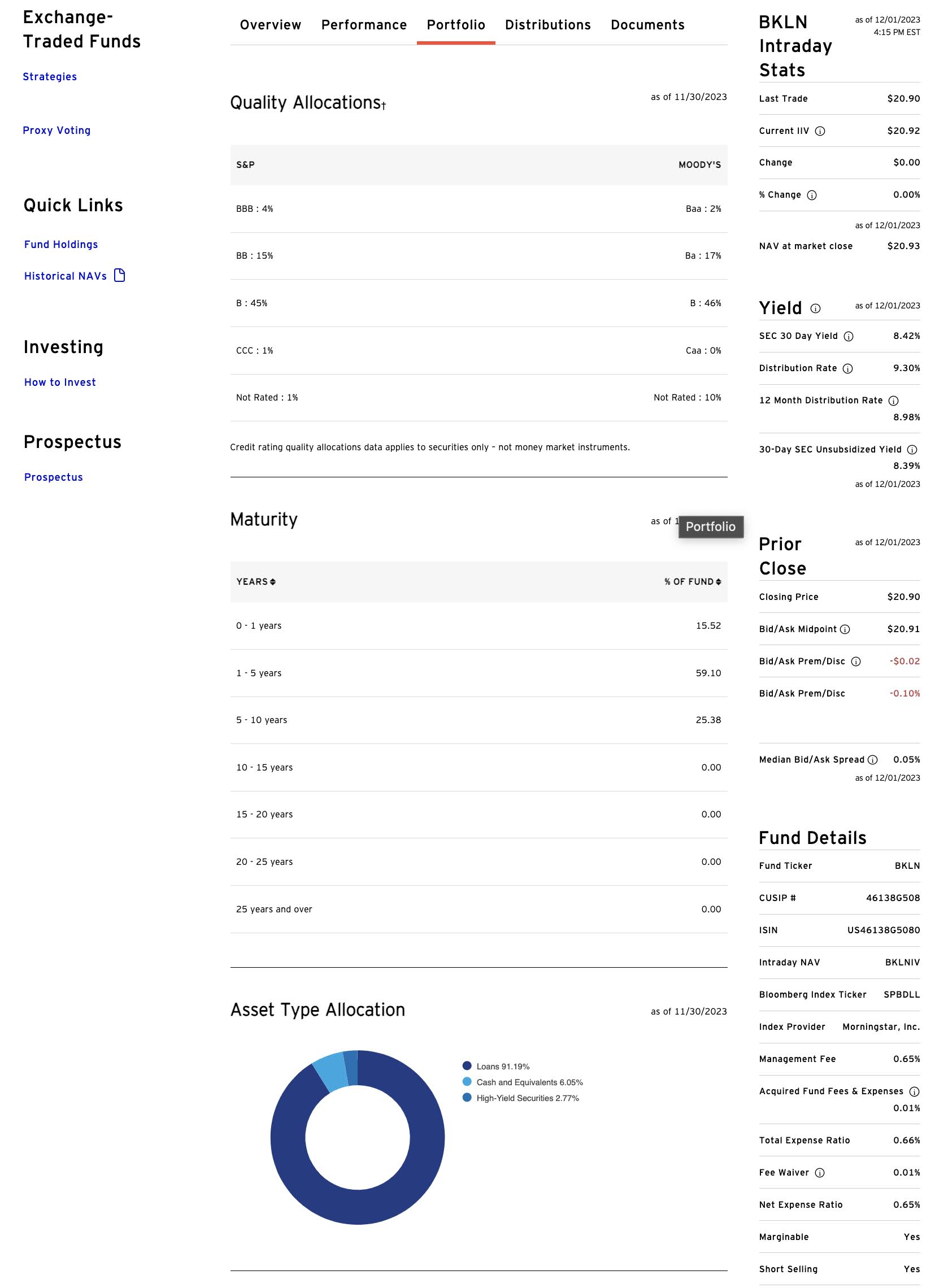 | (圖片來源:Invesco > Invesco Senior Loan ETF (BKLN),captured 2 Dec 2023) |